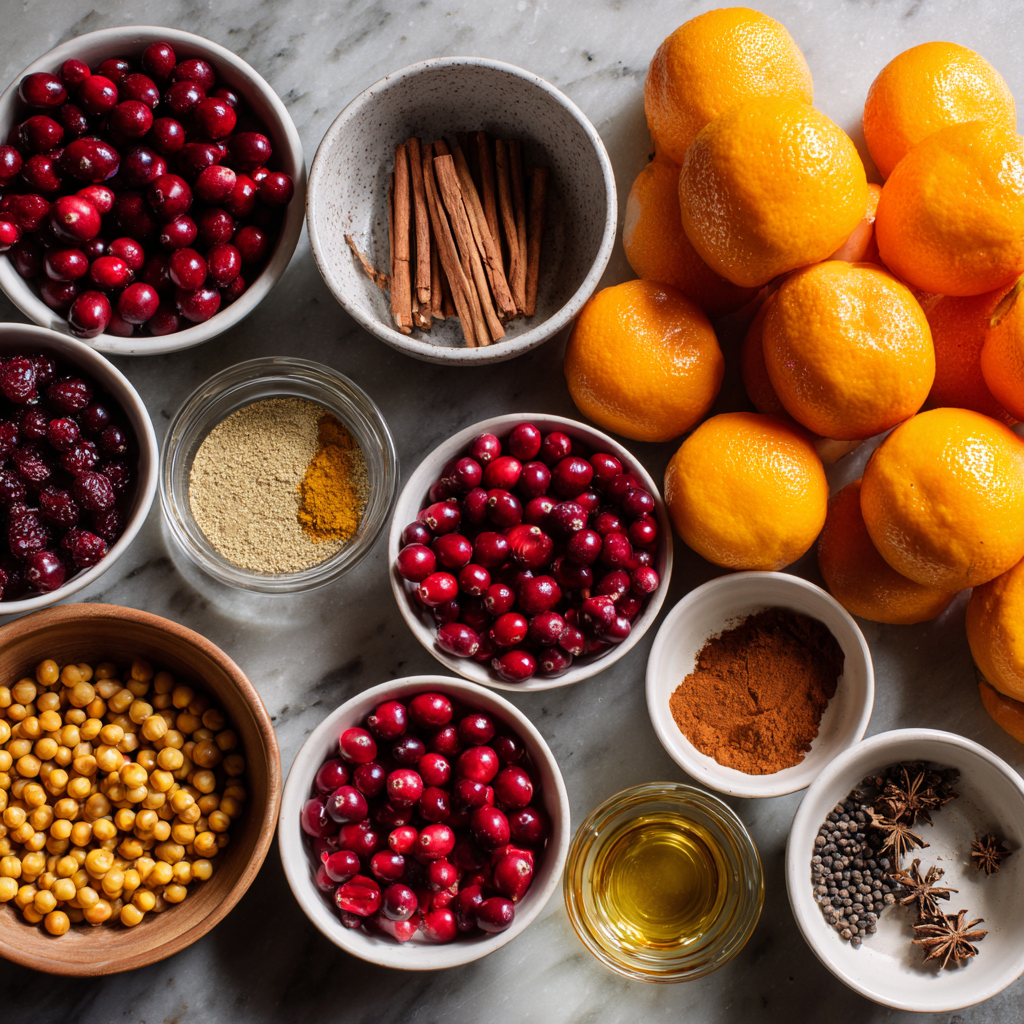 - Cranberries (1/2 cup): Fresh or frozen. They add a tart, crisp scent and beautiful festive color.